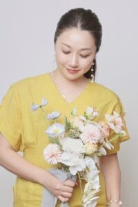 また、秋を演出したかったのでドライフラワーを使用することにしたのですが、アーティフィシャルフラワーとは違って思い通りの形にならないので、自然の形を活かしたままコーディネートするのが難しい点でもありました。