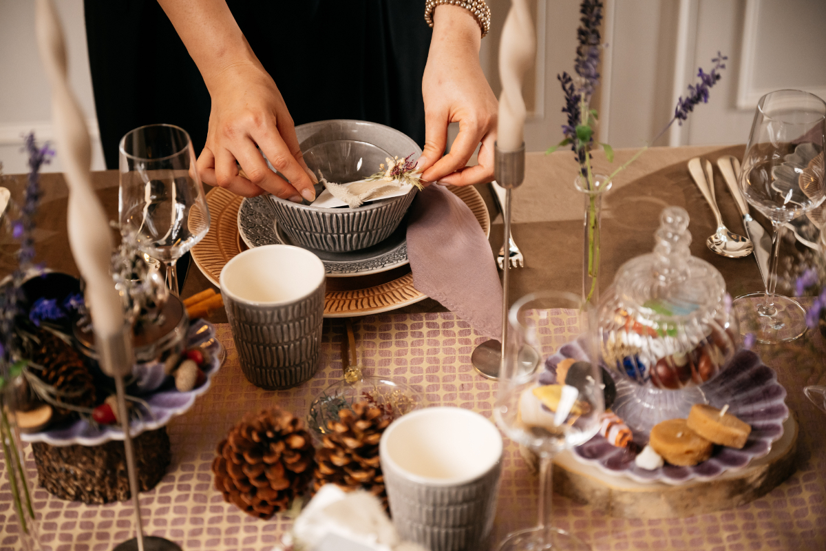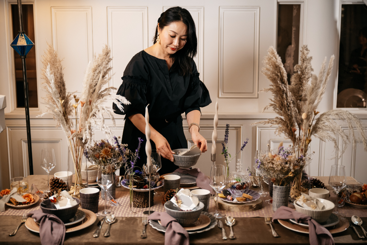 マテュース様は、ファッション業界出身の女性が立ち上げたスウェーデンのブランドということを知り、今回のテーブルコーディネートのテーマを「秋の森を感じて 〜女友達と楽しむFIKA&MIDDAG~」にしました。