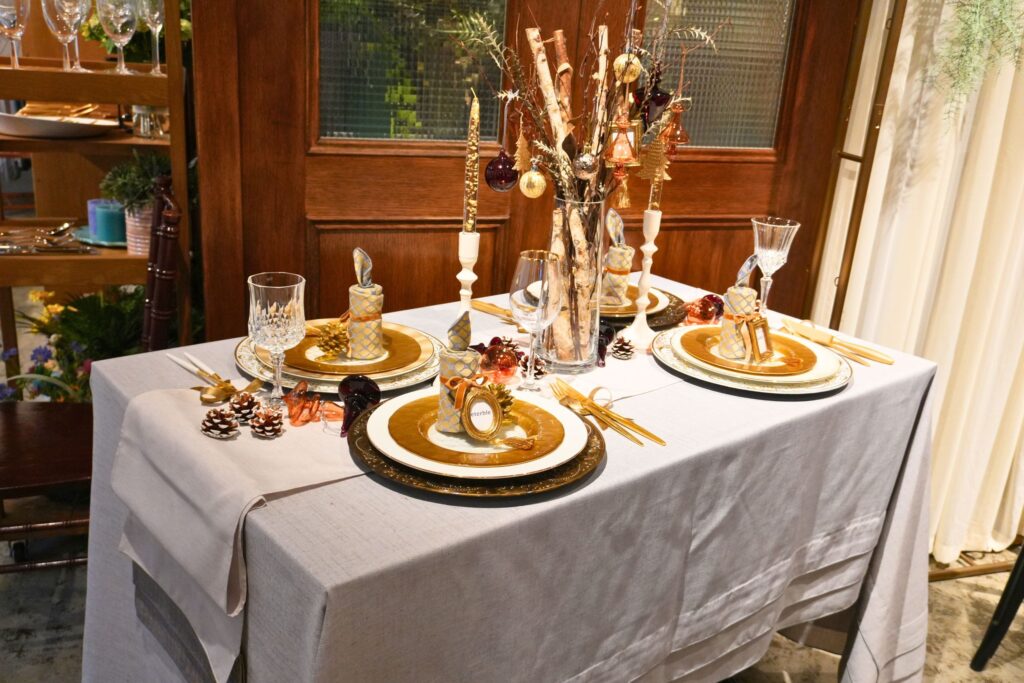 長坂さんによるクリスマスをイメージした華やかなテーブルコーディネートの展示もあり、コラボ商品を素敵に活用する方法も再現。ゲストの皆様は思い思いに商品を手に取って、気になることをご質問されたり、コーディネートを写真に収めたりされていました。